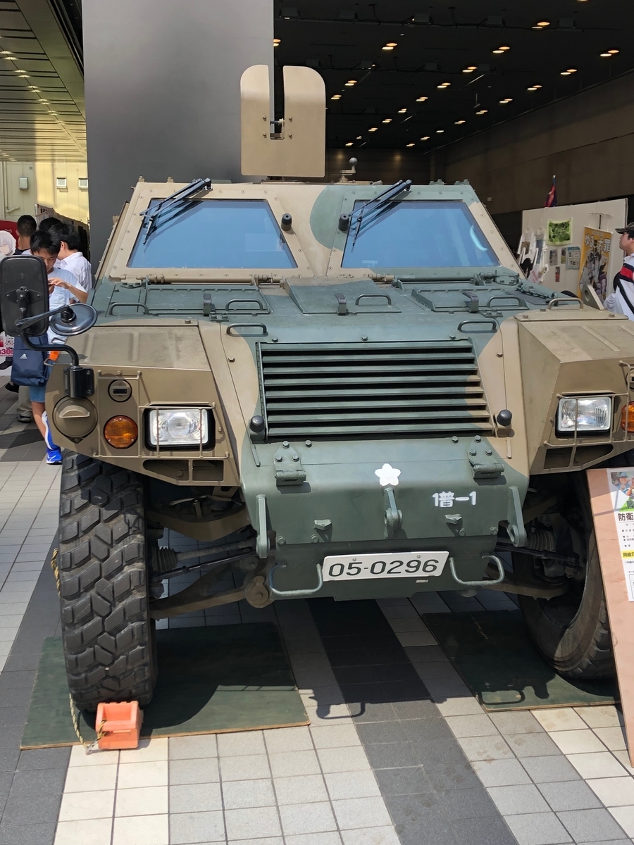 何かと思ってみてみると、なんとそこには陸上自衛隊の軽装甲機動車がとまっていました(;゚Д゚)